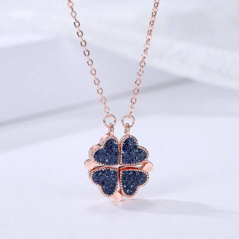 Magnetisch ontwerp zodat de ketting kan worden opgevouwen tot een klavertje vier.
