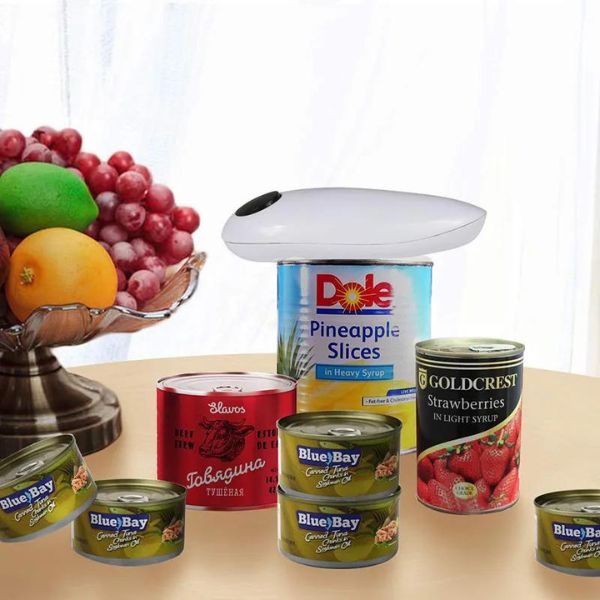 Met één druk op de knop open je blikken van verschillende formaten snel en veilig. Perfect voor iedereen, inclusief mensen met artritis of handpijn.