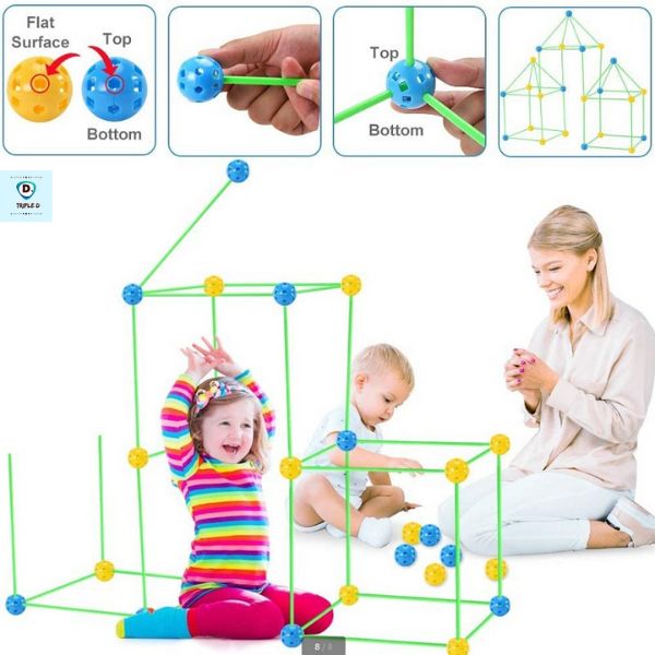 Stimuleer de creativiteit van je kinderen met de FORTKID-bouwset! Bouw een magisch fort waar je kleintjes kunnen verkennen, spelen en dromen. Met 87 duurzame plastic stokken en verbindingen kunnen ze eindeloze structuren van hun gewenste kastelen creëren of een geweldig fort bouwen en regeren als echte koningen en koninginnen!