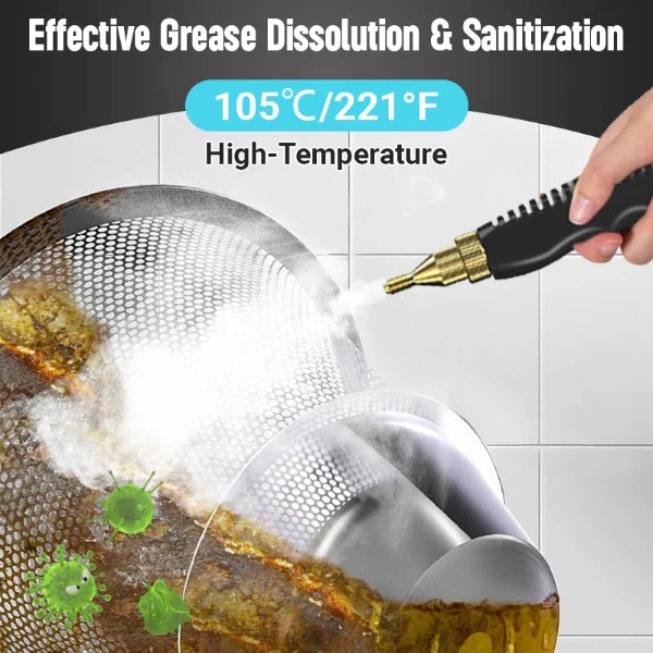Het vermogen van 1600W genereert stoom tot 105℃ in minder dan 10 seconden, waardoor vet, vuil, stof en vlekken snel van diverse oppervlakken worden verwijderd.
