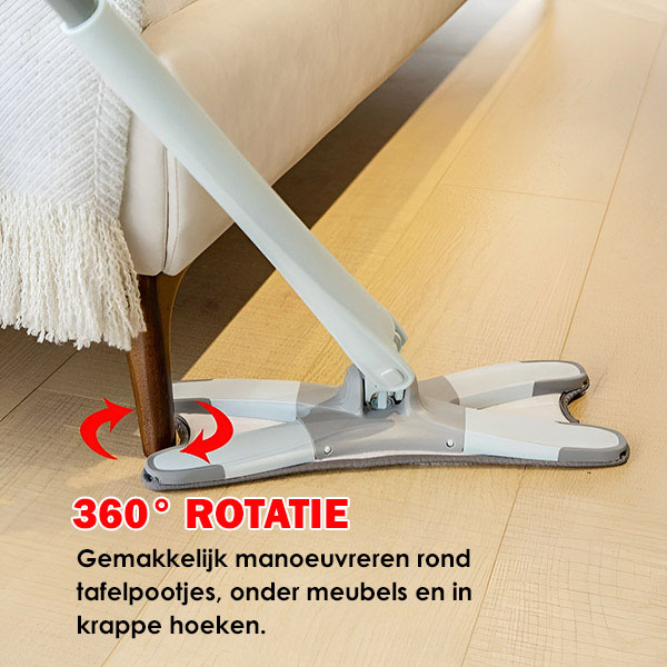 Dweilen was vroeger rommelig en tijdrovendβniet langer. Deze mop is ontworpen om de schoonmaaktijd te halveren! Veeg stof, vuil en morsen weg met slechts één beweging.